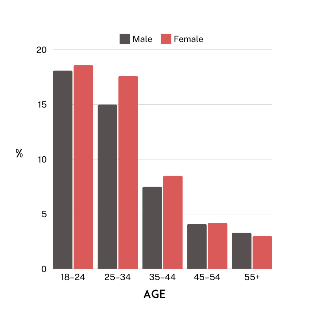 It’s no secret that TikTok is extremely popular with the younger generation. The bar chart below breaks down TikTok’s age demographics.