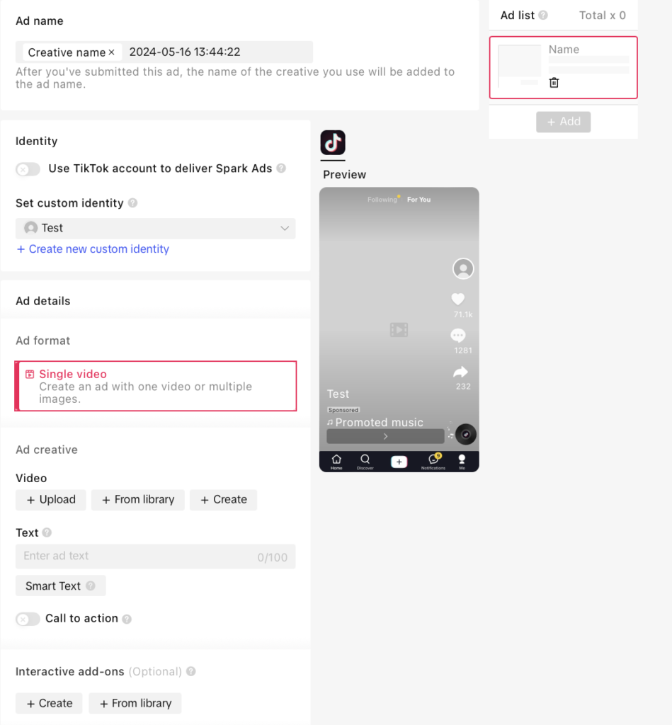When creating your ad, use more than one creative to get the most out of your campaign. TikTok recommends using 5 – 10 different creatives per ad group and 3-5 varied ad groups per campaign. Using different creatives, especially during testing, helps to gain clearer insights, particularly in the ad group’s exploration stage.